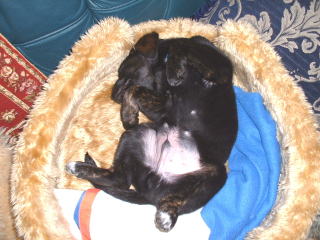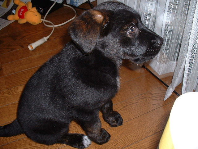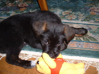 ↑お座りするには長い脚がじゃま。長くてゴメン。胸毛はホワイト。 クマのプーさんは僕のおもちゃ。↓