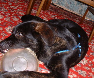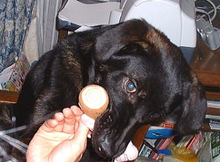 ←円盤形ガムをもらって一心にカミカミ中。