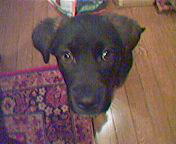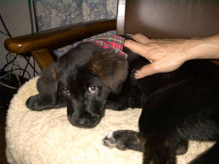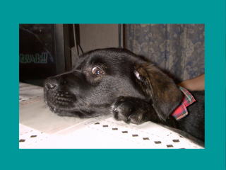 | 第6週 2003.3.29 sat. ママは遊び相手 生後2ヶ月と20日。ファミリーに加わってひと月と1週間。 このお家にきてから、いっぱい覚えたよ。居間がボクの部屋。ソファーの上のベッドがボクの寝場所。ママはボクの遊び相手でパパは眠いときに抱っこしてくれる、ゆりかご。それに、オスワリと待てはマスターしたし……ボクって我ながらとってもイイ子だなー。 2003.3.30 sun. お散歩って疲れるネ 今日はいいお天気でポカポカ暖かかったので、初めて「お散歩」というものをしてみました。道路に出ても、全然、歩かないので、行きも帰りもパパが抱っこ。公園には鳩がたくさんいたので、追いかけて遊びました。へとへと。お散歩って疲れるのね。すぐお昼寝しました。 2003.3.31 mon. 兄ちゃん帰宅、嬉しいナ 千葉のお祖父ちゃん、お祖母ちゃんの家に遊びに行っていた中兄ちゃんが、夜、帰って来たので、大喜び。顔をペロペロ、歓迎のチューをいっぱいしてあげました。夜のお散歩にも行きました。眠る前の大暴れ、カミカミアタック遊びをしないで済むかな? 2003.4.1 tue. ゴミ袋あさり始まる ボク、台所のゴミ袋が気になって、気になって。 いいにおいがするし、ティッシュペーパーを見つけてくわえて逃げると、みんなが追いかるし。面白いなー。アっ、また、廊下につまみ出されちゃった。反省なんかするもんか、フテ寝してやる。 2003.4.2 wed. いたずらっ子ムサシ 台所にあるゴミ袋から、いいにおいのする紙を引っ張り出したら、絨毯の上がコーヒかすだらけになってまたつまみ出されちゃった。それと、テーブルの上のマグロフレークと、ベーコンもおいしかったなー。あしたもいいことがありそう。WOWWOW。 2003.4.3 thu. テーブルの上で… テーブルの上に乗って怒られたり、ボクは悪い子してます。だって、ギャングエイジだぞ。フン、テヤンデー、怒られたって、めげるもんか。…で、乗ってたら、下りられなくなっちゃった。 きゅー〜ん、きゅ〜ん、だれか下ろしてーーー!。 2003.4.4 fri. ボクは天使(sometimes) 昨日、ママは花見で夜遅く帰ってきました。いつもの「ワウワウ、カミカミ攻撃」モードは終わった後だったので、「とってもイイ子」状態でした。天使みたいでしょ、おとなしいときのボクって。「だっこして一緒に寝たいなー」って言ってました。そうでしょ、そうでしょ。 |