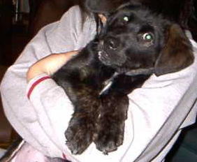 | 第11週 2003.5.3 sat 体重は10キロ 大きくなったでしょ。今朝の体重10キロ。ボク、膝の上に上るのも、だっこされるのも好きなんだけど、いつまでしてくれるかな? 2003.5.4 sun 塀に向かって高々と 立派になったもんだと感心されちゃった。朝一番、庭に出して貰ったときにね、右の後ろ脚を壁に向かって高々と上げてオシッコしたんだ。あー、気持ちよかった。ママはびっくりしたみたい。 2003.5.5 mon. 部屋の模様替え ムサシコーナーがフローリングになりました。脚を上げてオシッコするようになったせい。ねらいはいいんだけどね、ちょっとはずれちゃう。ちゃんとトイレシートで、脚を上げてるんだけど。絹の絨毯よ、バイバイ。 2003.5.6 tue. 「お手」を覚えました 昨日の夕飯の後、パパが「お手」を教えてくれました。パパの手のひらに片手をのせると、パパとママは大喜び。「今、教えたばかりなのに、すぐ覚えるなんて、いい子ねー、頭いい」って言ってました。かなりの親バカだね。エッヘッヘ。 2003.5.7 wed. 「おかわり」もセットで 「お手」のつぎは「おかわり」。すぐにおぼえちゃった。わかったよ、わかったよ。「おすわり、お手、おかわり」はセット。これをしたら、ごほうびね。ほーら、きたぞ。言われる前に、ぜん〜ぶやってあげる。(というわけで、ムサシは「おすわり」も言わないうちに、気配を察すると、全部をセットで、やってみせてくれました。) 2003.5.8 thu. 落花狼藉、傍若無人 夕方帰宅したら、部屋の中は泥棒が入った後のような有様。ごみだらけ。ひとりでお留守番をしていたムサシ君、お気に入りのゴミ袋荒らしのやりたい放題。 「キャーッ! なに、これ! ムサシー!」。 2003.5.9 fri. モデル犬です 1月9日生まれなので、今日でちょうど満4ヶ月。ママのお友達のご主人(プロカメラマン)が、写真をとってくれて、ラッキー。ボク、モデル犬です、えっへん。生まれたばかりの頃も知ってるから、「大きくなった」ってびっくりしてたよ。 体重は10.8キロ。「倍々ゲーム」と獣医さん。狂犬病予防接種も受けて、今日は撮影にはぴったりの「誕生4ヶ月記念日」でした。 |